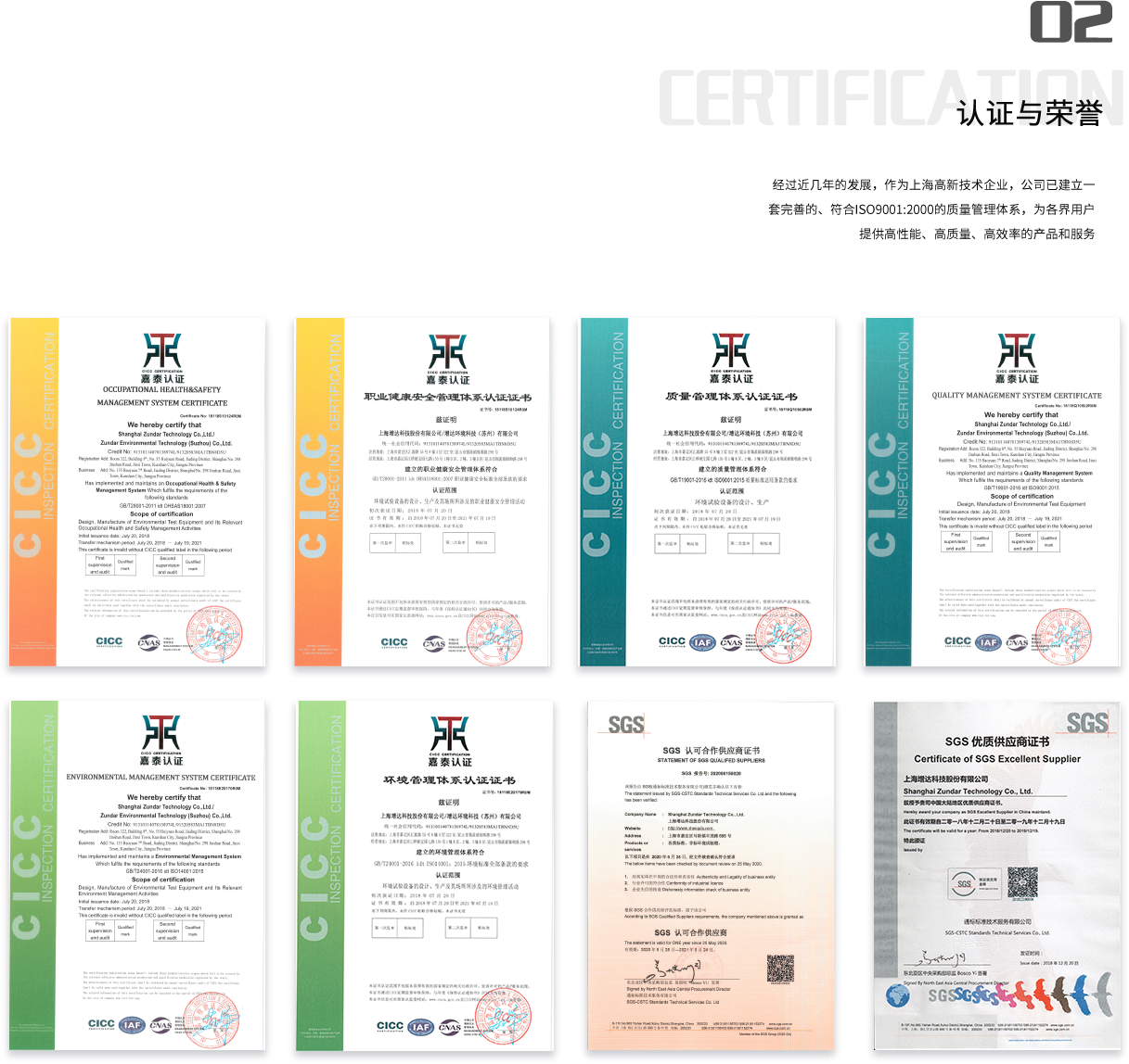 上海增达以员工满意,客户满意为宗旨,遵循“科技领先、价格合理、质量第一、服务优良”的方针,依靠现代化管理模式,秉承“团结协体,求实守信,积极进取,追求卓越”的精神,为客户提供各种环境试验设备和优良服务,产品在中外用户中得到了广泛的好评和信赖,公司产品已广泛应用于汽车制造、航空航天、军工制造、电子通讯、医药化工、检测计量、科研院校、电子电池等众多领域;同时也致力于光电、光伏、太阳能等新能源行业。